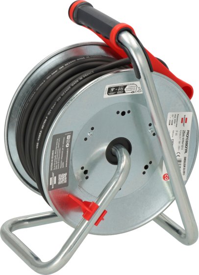 Enrouleur de câble SILVER-S Professional / Enrouleur électrique (4 prises avec clapets, flasques en acier, voyant de tension, poignée, clip, 25m H07RN-F 3G1,5, en extérieur), fabriqué en France