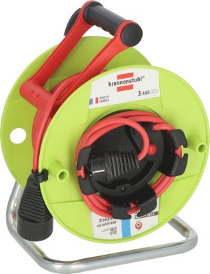 - Bobine latérale avec disjoncteur thermique, trous de rangement pour la fiche et encoches pour maintenir le câble