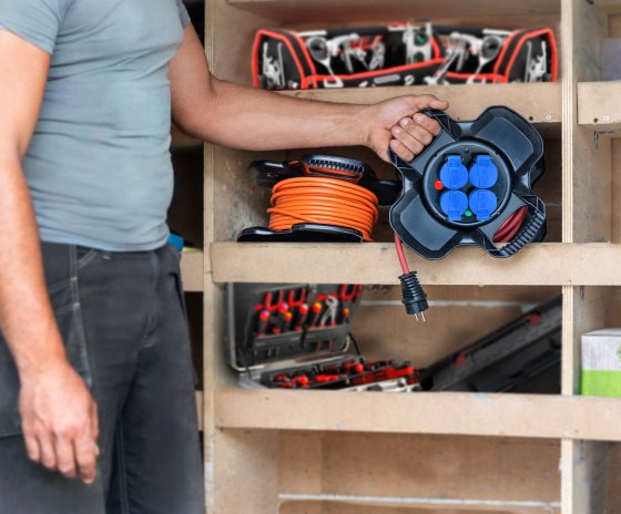 - Voyant de présence de tension LED lumineux intégré au bloc prises, indique immédiatement si l'enrouleur est sous tension et évite ainsi les déplacements inutiles
