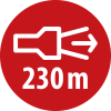 - La fonction zoom permet de passer en continu d'un éclairage proche et large à un éclairage lointain et focalisé d'une portée maximale de 230m, simplement en tournant la tête de la lampe