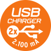 - 2 prises-chargeur USB 5V/2,1A/10,5W avec témoin de fonctionnement et capuchon d'étanchéité